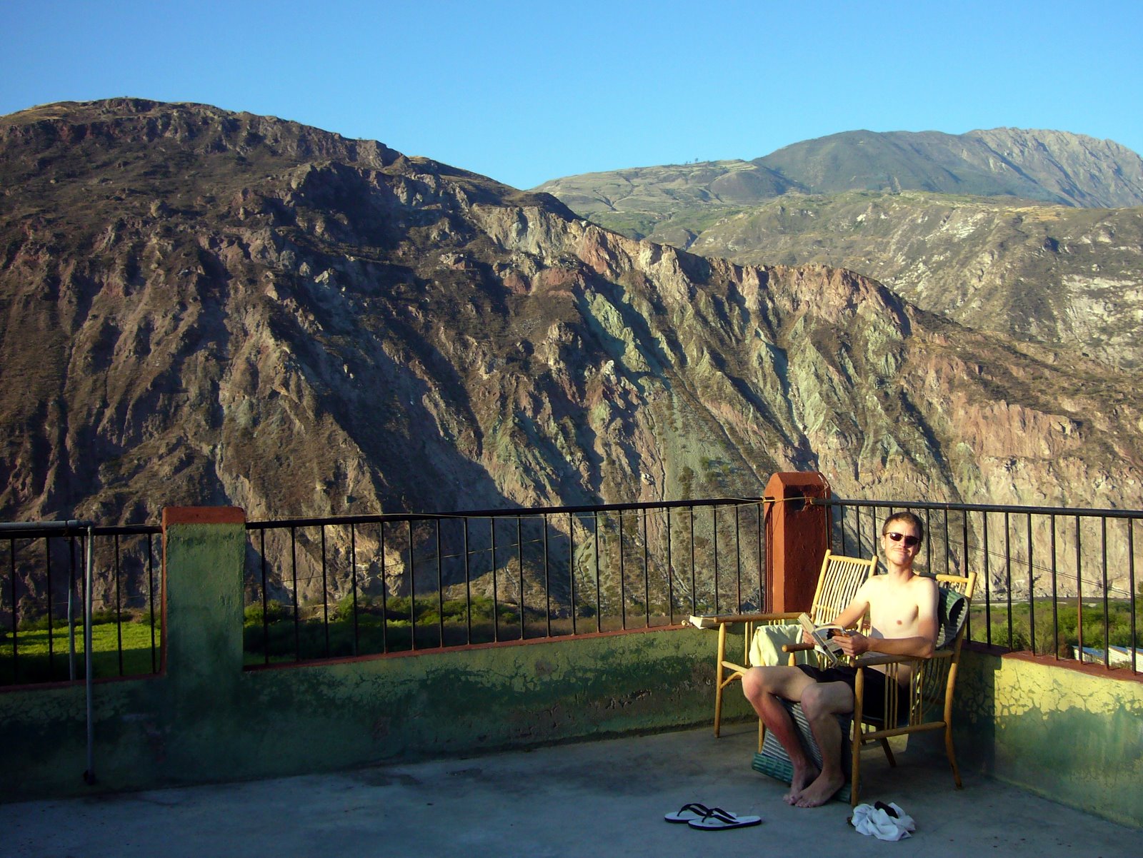 Enough of the negative parts, the positive ones are much more mentionable. Biking here is a own world for itself. It was interesting seeing the first part of the trip which we had traveled before by bus on our way to Mollepata. In no way had it been possible to see the beauty and changes of the landscape from the bus. Going down from 3600 m into a valley of 1800 m, feeling the air getting warmer, smelling suddenly the scent of flowers and trees (and noticing the small biting flies again). It was more difficult again to find a campingspot, so we took advantage of a hostel we passed. There were no other guest (who stays usually in places like that?) but the hostel had a small pool with riverwater and a roof terrace.